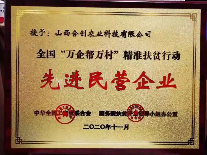 山西合創農業科技有限公司獲評全國(guó)“萬企幫萬村”精準扶貧行動先進(jìn)民營企業稱号,是社會(huì)各界對(duì)合創農業扶貧工作的認可和鼓勵。合創將(jiāng)進(jìn)一步履行好(hǎo)企業社會(huì)責任,持續深入開(kāi)展農業扶貧工作,以實際行動助力“萬企幫萬村”精準扶貧,全力以赴打好(hǎo)脫貧攻堅戰,爲實現全面(miàn)小康社會(huì)貢獻力量。